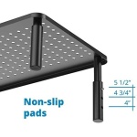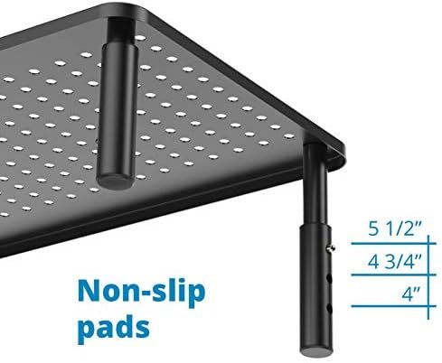 SLEEK, FASHIONABLE, ELEGANT DESIGN makes this monitor riser a very nice accessory for your desk and office. Make of durable black steel. It’s smooth and feels great with vented top surface. Holds up to 44 pounds including most monitors.