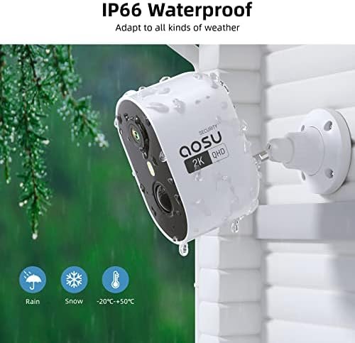 【Clearer Details】— aosu outdoor security camera with 2K picture quality which is improved by 50% from 1080P video, and captures clearer details whether day or night. aosu cameras’ built-in spotlights provide brilliant night vision to ensure your home security.
