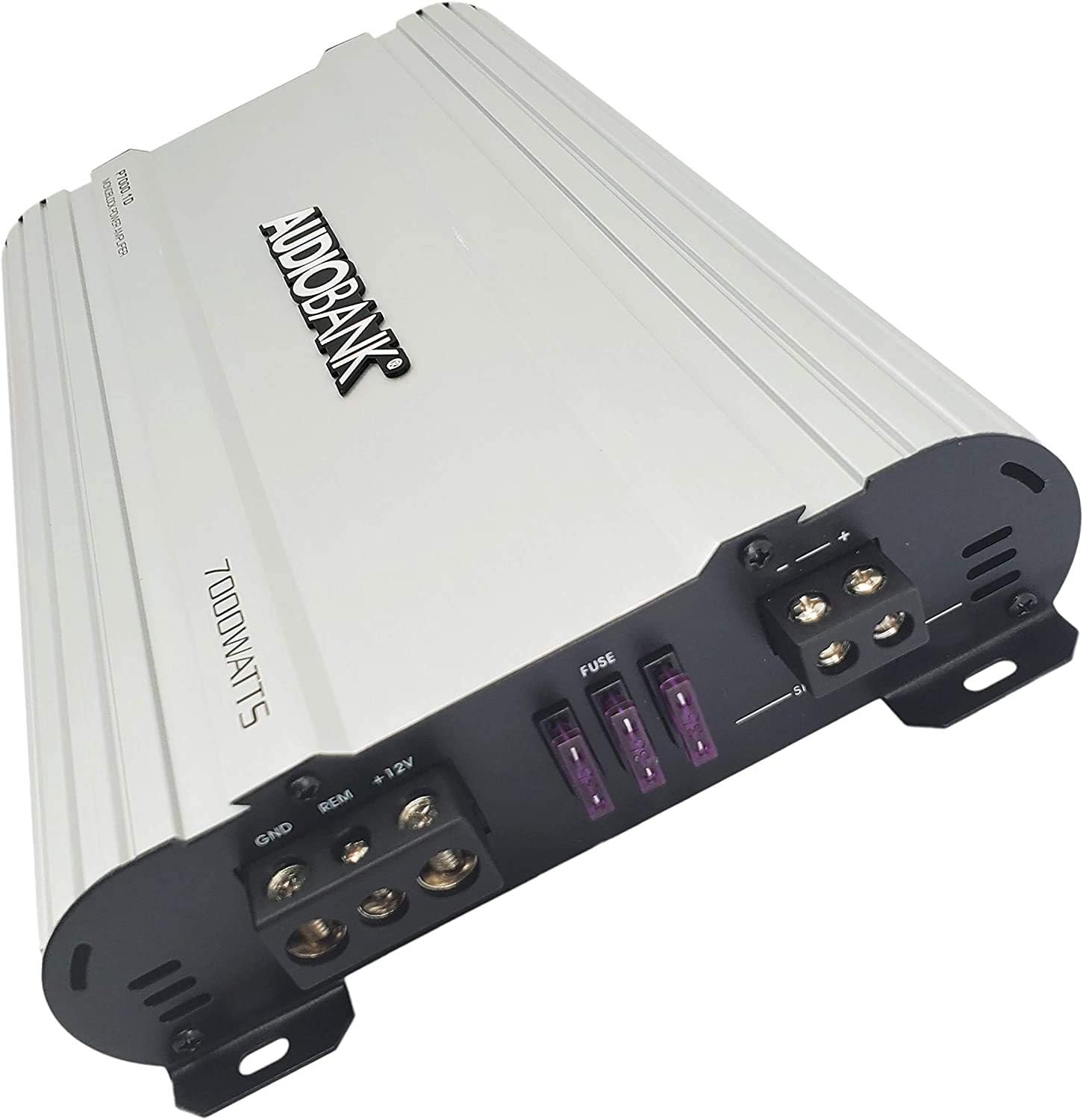 Audiobank Monoblock 7000 WATTS Amp Class D 1OHM Car Audio Stereo Amplifier Remote Turn On/Off Circuit/Heavy-Duty Aluminium Alloy Heatsink Power and Protection Indicator P7001