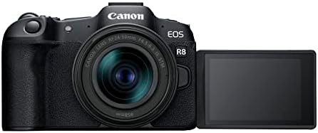 The EOS R8 combines high-performance full-frame capabilities with a lightweight and compact design. With a 24.2 megapixel full-frame CMOS sensor, full use of EOS R-series interchangeable lenses, and highly advanced functionality and performance, the EOS R8 can deliver high-quality stills and movies. The new RF24–50mm F4.5-6.3 IS STM standard zoom lens is a super-compact, wide-to-standard focal length zoom lens perfect for anyone looking for strong wide-angle still imagery and video combined with easy handling and portability.