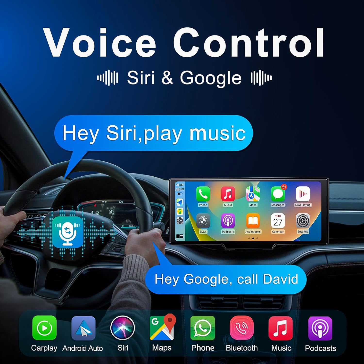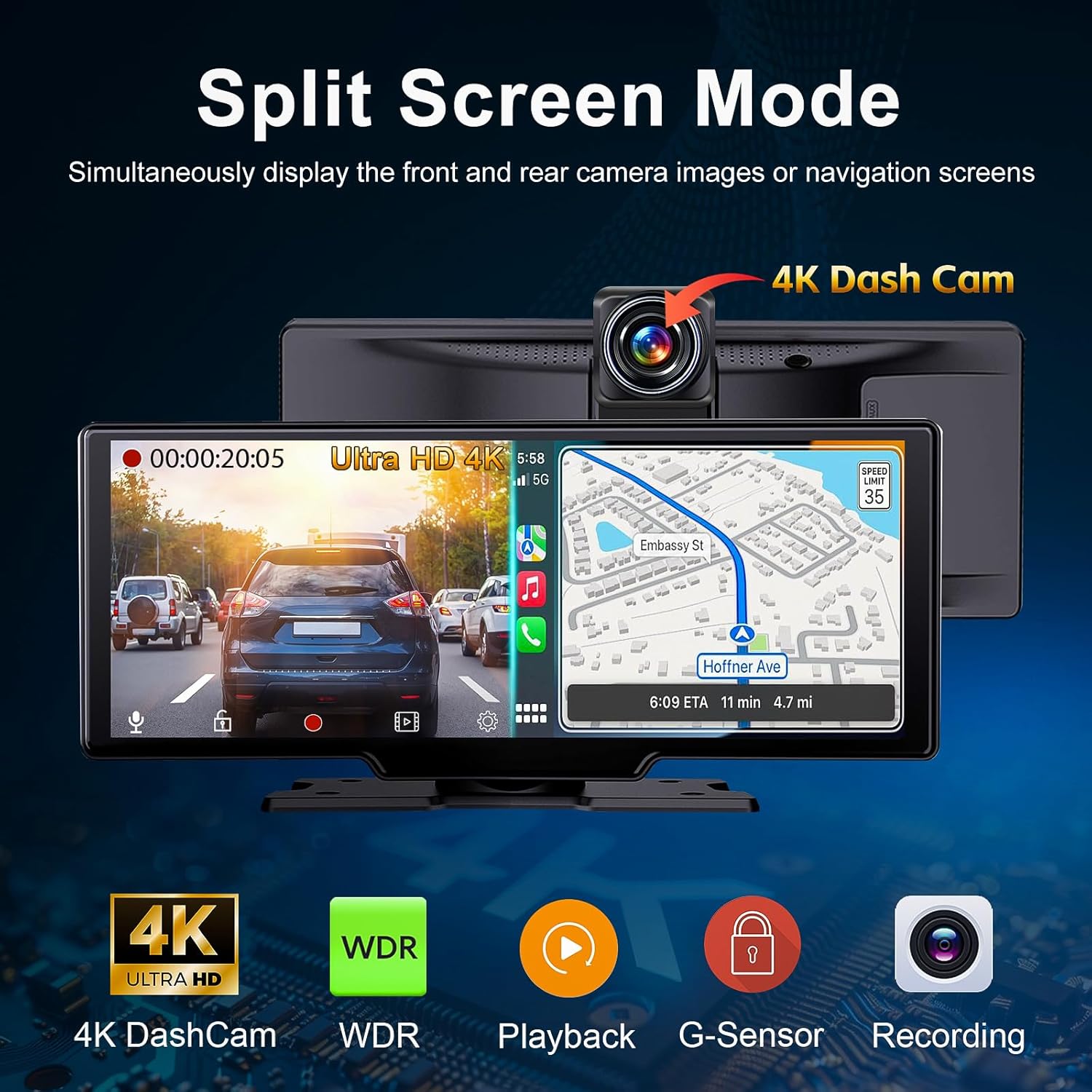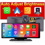 【Smart Auto Screen Brightness Adjustment】Luzeterna Apple CarPlay screen automatically adjusts the brightness based on external lighting. It remains clear and visible even in bright daylight, and automatically dims at night to reduce glare. You will say goodbye to the hassle of manual adjustments, and focus more on driving while enjoying a more comfortable visual experience , 【Upgraded 4K Dash Cam】Equipped with a 4K front camera and a 1080P rear camera, the system records both front and rear footage simultaneously, providing comprehensive driving surveillance. Even at night, the footage also remains clear, especially when reversing, offering brighter and clearer visibility. The CarPlay screen displays both front and rear views at the same time, allowing you to easily monitor the surroundings while driving and enhancing safety and convenience. , 【Wireless Apple CarPlay / Android Auto】 It can easily connect Apple CarPlay or Android Auto without the need for cables, and access popular apps like Waze, Google Maps, and Spotify. With voice control through Siri or Google Assistant, you can easily navigate, play music, or make hands-free calls, making your driving experience safer and more convenient. , 【AirPlay / Mirror Link]】By wirelessly connecting, the navigation, movies, videos, and games from your phone can be projected onto a 9.3-inch touchscreen, making long-distance driving more enjoyable. Whether it’s watching a movie or using navigation, you can enjoy a richer entertainment experience in your car. Please note that some apps (such as Netflix) may not support casting. , 【No Obstruction to Your View】The Luzeterna portable Apple CarPlay touchscreen features a 9.3-inch widescreen design, offering the immersive experience of a large display while effectively preventing any obstruction of your view due to a screen that’s too tall. Additionally, the CarPlay and Android Auto versions come with a 9.8-inch (length) by 3.6-inch (height) screen, providing a clear viewing experience while ensuring driving safety. , 【 4 Audio Output Options】Luzeterna head unit has a built-in speaker and supports FM transmission, Bluetooth audio, and AUX connection for three output options. Once it is connected, you can play audio through your car’s original sound system, offering a convenient audio experience whether you’re listening to music or taking calls. , 【Add Apple CarPlay to Any Car】Luzeterna portable CarPlay and Android Auto screen is compatible with various 7-24V vehicles, including cars, trucks and RVs. Installation is incredibly simple—just plug it into the car’s cigarette lighter socket to start using it. It also comes with two mounting brackets, allowing you to place the screen wherever is most convenient. , 【Custom Logo】We offer a custom boot-up logo service, allowing you to create a personalized logo based on your preferences. Our after-sales team usually responds and processes your request within 24 hours to make your device more personalized. ,
