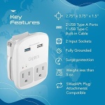 International Power Adapter: Equipped with 2 USA outlets, 2 USB (3. 6A) with Quick Charge 3. 0 & Attached USB-C cable – Perfect for travel – use with cell phones, laptops & other devices anywhere in the world – Few Exceptions Listed below , Travel Adapter Worldwide: Designed by a Traveler and perfected for a Traveler – Ultra compact 2.75″ X 3.75″ X 1. 5″ & weighs less than 5 oz. – Travel Pouch included – Fast Quick Charge compatible devices such as Samsung Galaxy, Tablets and More , Built-in surge protection – protect your high electronics from voltage surges and spikes. Voltage indicator (110V or 220V). LED illuminates to indicate 110V in outlets or both LEDs will illuminate to indicate 220V. Note: This is not a voltage converter , Ceptics World-Way Includes 6 adapters – Europe (Type C), UK (Type G), US (Type B), Australia/China (Type I), Germany/France (Type E/F), Japan (Type A) compatible outlets in most of Europe, Asia and more. Other SWADAPT attachments sold separately , 2-Years Limited Warranty – Note: This universal travel adapter is compatible with electronics and chargers for worldwide voltage (100-240V AC) . It’s not compatible with 110V AC only devices such as some hair clippers, hair dryers & curling irons etc.