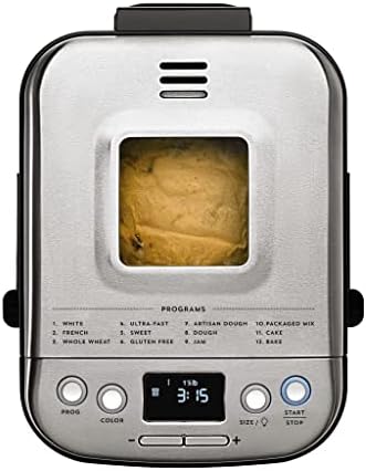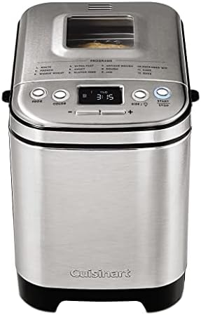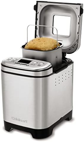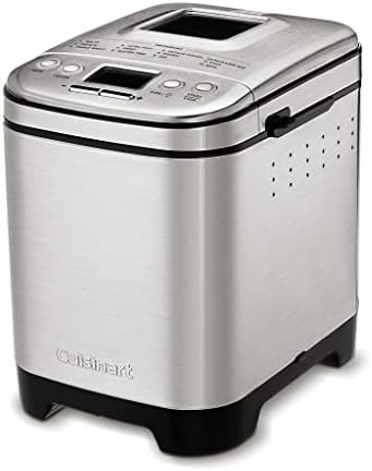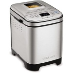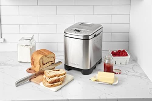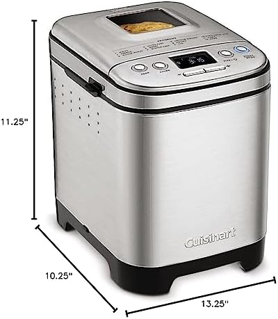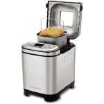 Everybody loves homemade bread, but not everybody has time to make it. Let Cuisinart do it for you! our versatile and compact automatic bread maker offers a variety of crust colors and loaf sizes, as well as 12 preprogrammed menu options. Foolproof recipes include everything from gluten-free and artisan breads to jams and sauces. With a convenient 13-hour delay-start timer, that wonderful aroma of just-baked bread can be waiting for you when you wake up. Features: Compact vertical bread maker with stainless steel exterior|12 preprogrammed menu options – fully automatic easy to use|3 crust shades – light medium or dark|Bakes up to a 2-pound loaf|Viewing window to monitor the process|Removable kneading paddle and bread pan|Interior light to check bread as it bakes|Easy-to-read LED display|Bake-Only option|13-hour delay start – fresh bread anytime!|Power failure backup|BPA-free|Limited 3-Year warranty.