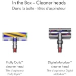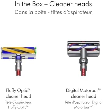 Fluffy Optic cleaner head reveals hidden dust on hard floors. Digital Motorbar cleaner head deep cleans all floor types and de-tangles long hair and pet hair as you clean.