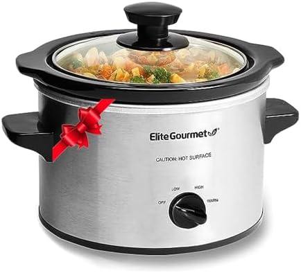 Elite Gourmet MST-250XS Electric Slow Cooker Ceramic Pot, Adjustable Temp, Entrees, Sauces, Stews & Dips, Dishwasher Safe Glass Lid & Crock, 1.5 Quart, Stainless Steel
