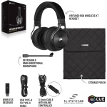 Simultaneous Dual-wireless Connections: Get high-fidelity 24bit/48KHz game audio with hyper-fast, ultra-long range SLIPSTREAM CORSAIR WIRELESS TECHNOLOGY, plus Bluetooth with Qualcomm aptX HD. , Uncompromising Sound Quality: A matched pair of precisely tuned 50mm high-density neodymium speaker drivers deliver impeccable sound with a frequency range of 20Hz-40,000Hz – double that of typical gaming headsets. , Comfort is King: Premium memory foam earpads that conform to the shape of your head, along with a lightweight headband deliver pillow-soft, long-lasting comfort, enabling you to play for hours on end. , Broadcast-Grade Detachable Microphone: A 9.5mm omnidirectional, high-bandwidth microphone provides wide dynamic range and superb vocal clarity with excellent low-end response. , Premium Lightweight Construction: Built with machined aluminum throughout, from the headband to the ear cups, ensuring both maximum comfort and long-term durability. , Immersive Dolby Atmos on PC: Places the sounds of the game all around you with three-dimensional precision, so you can react faster and more accurately. ,