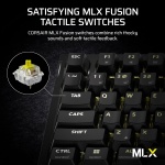 Skill Meets Style: Seize the win on a gaming keyboard that matches your style and punctuates your best play. The space-saving 75% keyboard layout allows more room for sweeping mouse movements , Sturdy PBT Double-Shot Keycaps: Durable PBT double-shot keycaps allow vivid per-key RGB shine-through, while resisting wear and fading over time , CORSAIR MLX Fusion Switches: Pre-lubricated CORSAIR MLX Fusion tactile mechanical switches offer satisfying feedback and consistent typing , Hot-Swappable Switches: A hot-swappable PCB makes it easy to swap in your own switches and mod your K65 PLUS WIRELESS to your liking , Fast and Secure Wireless Connections: Easily connect via low-latency 2.4GHz wireless, Bluetooth, or USB wired, with secure AES encryption ,