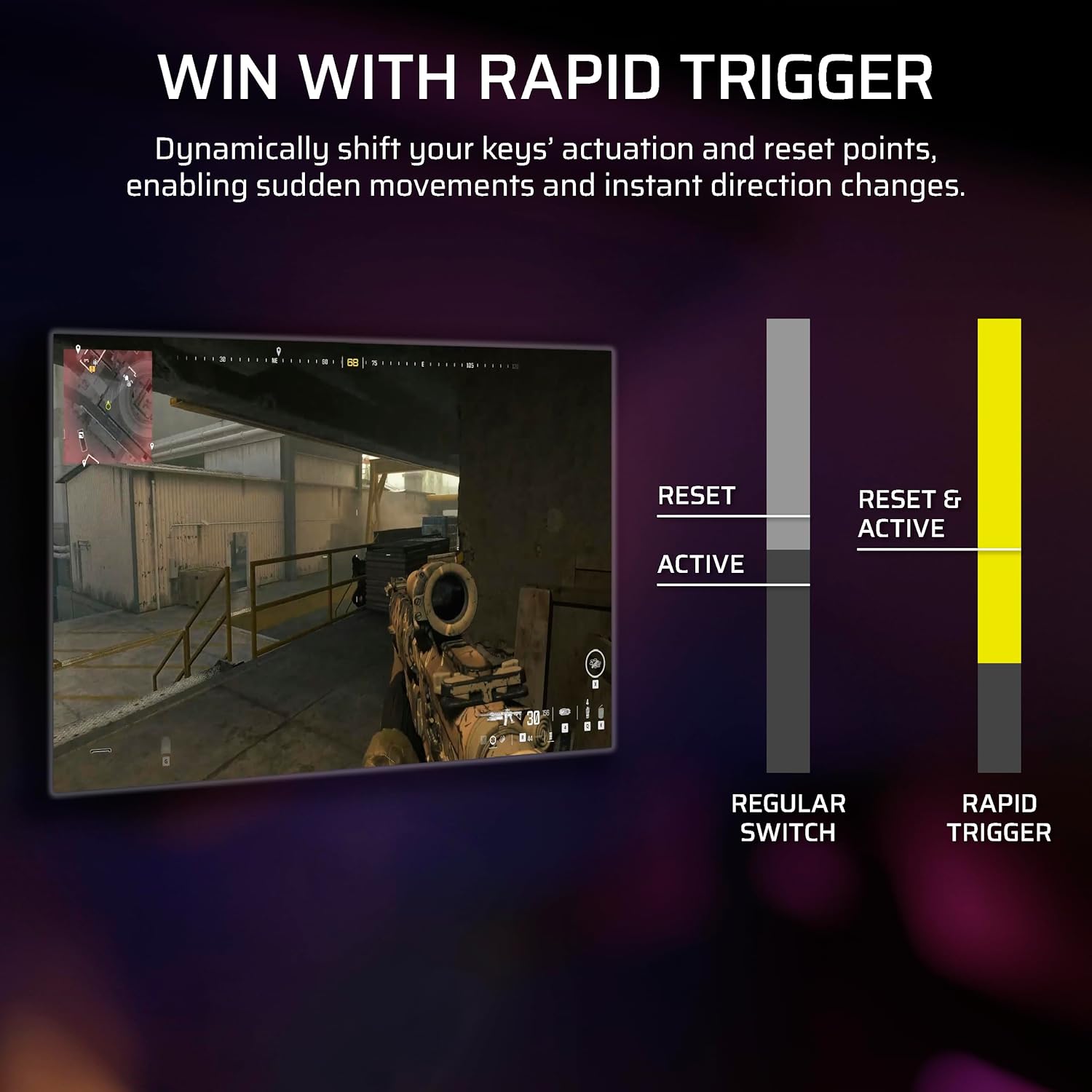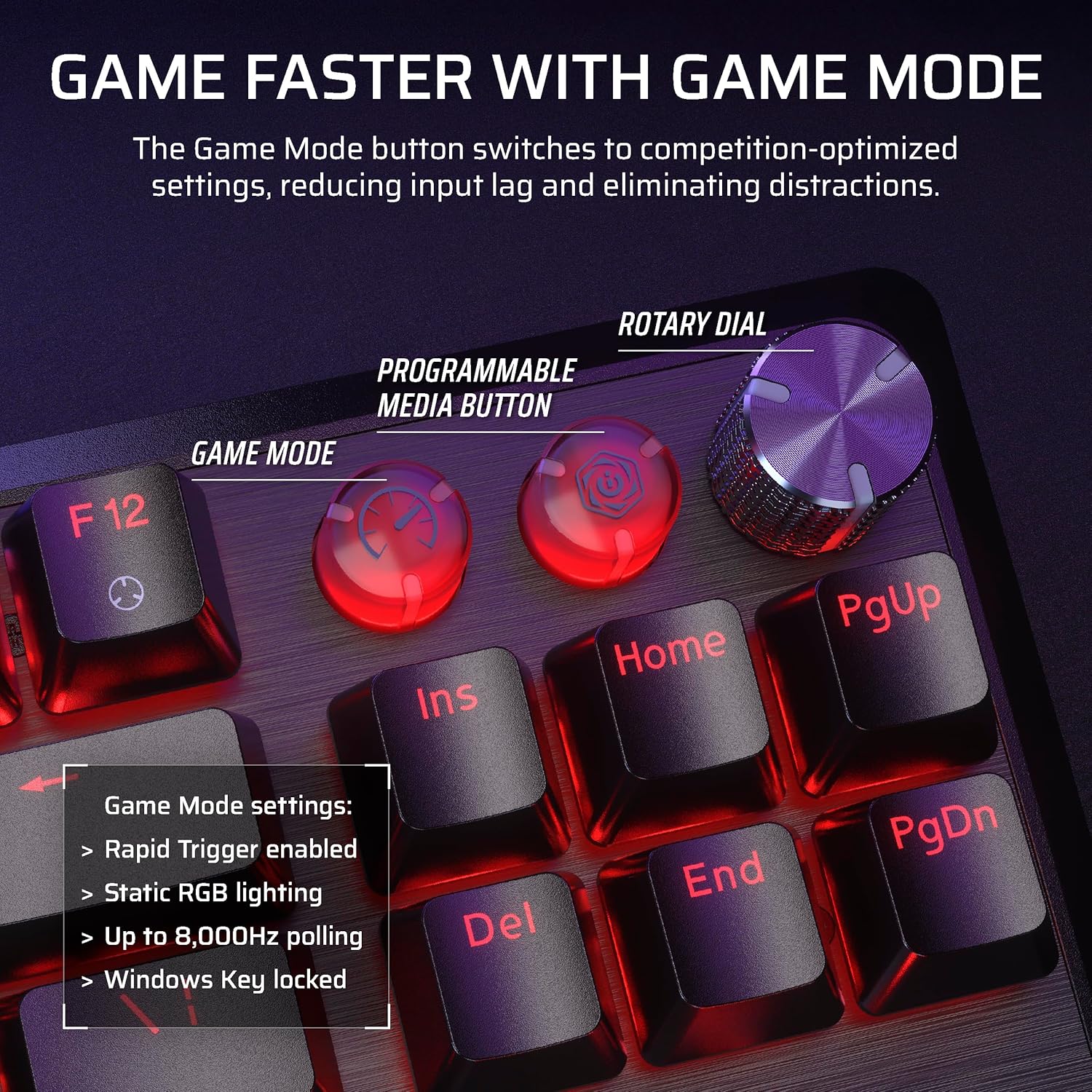 Speed is Everything: It’s all about speed. With Rapid Trigger, ultra-fast polling rates, and per-key adjustable switches, K70 PRO TKL removes every barrier that comes between you and gaming greatness , Space-Saving Tenkeyless Layout: The sleek, streamlined tenkeyless layout fits in nearly every gaming setup, while leaving room for sweeping mouse movements , MGX Hyperdrive Magnetic Switches*: Pre-lubricated CORSAIR MGX Hyperdrive magnetic switches deliver a smooth, ultra-responsive keypress. Its sturdy double-rail structure reduces wobble and guarantees peak performance for 150 million keystrokes. *Function keys and non-primary keys feature CORSAIR MLX switches , Rapid Trigger Advantage: Rapid Trigger dynamically changes your keys’ actuation and reset points, so you can move and reset your movements faster than ever , Customizable Per-Key Actuation: Adjust the actuation point of each key from a super-sensitive 0.4mm to a deep 3.6mm (in 0.1mm steps) or set two actions to a single keypress with dual actuation for quick-fire combos and action pairs ,