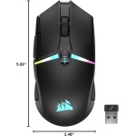 Power and Performance in Your Palm: The wireless mouse that keeps you well equipped and ready for anything in FPS, MOBA, Battle Royale, and more, with an exquisitely designed, sturdy, symmetrical shape , This Mouse Goes to 11: 11 Fully programmable buttons, including a scroll wheel tilt, enable you to customize the way you play with powerful macros or button remaps , Ultra-Precise 26k DPI Optical Sensor: With a native 26,000 DPI, 650 IPS tracking, and up to 50G acceleration, the CORSAIR MARKSMAN optical sensor accurately captures even the smallest fast-twitch mouse movements , Up to 100-Hour Wireless Battery with Fast Recharge: Play up to 100 hours, match after match after match, on a single charge, and just 15 minutes of recharging keeps you in the game for 20 hours via Bluetooth with Backlighting off , Dynamic Seven-Zone RGB Backlighting: Look laser-sharp on the battlefield with seven dazzling, uniquely designed RGB lighting zones, endlessly customizable in iCUE ,