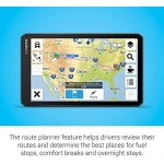 The route planner feature helps drivers review their complete routes and determine the best places for fuel stops, comfort breaks and overnight stays