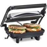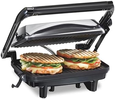 NO NEED TO FLIP: Nonstick top and bottom panini press grids heat and brown the sandwich, giving you warm, crisp results.