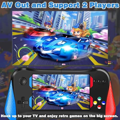 · Hook Up to TV, Support 2 Players: The package includes a gamepad that supports two players playing at the same time, allowing you to enjoy the fun of two-player games. Connect this handheld game console to your TV with an AV cable for a larger, more comfortable view of the game. Enjoy an immersive gaming experience with family and friends on the big screen and experience the fun of retro games.
