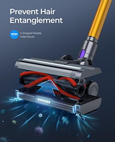 🎄LED SMART PANEL: Built-in sensor, you can track the remaining battery power and the operating status of the vacuum cleaner via the LED panel. When the roller brush/host is blocked, the LED panel emits a red alarm to remind you. By pressing the “+/-” button, you can change the cleaning mode. (Eco/Standard/Boost)