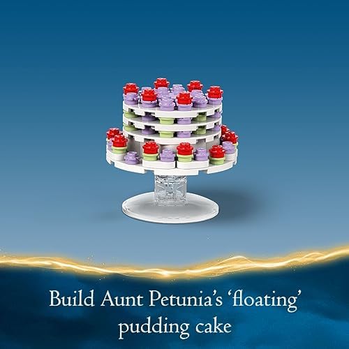 Iconic accessories – Kids can relive classic movie moments as they build Aunt Petunia’s ‘floating’ pudding cake and a detailed model of Tom Riddle’s diary with Harry Potter’s sock