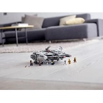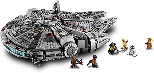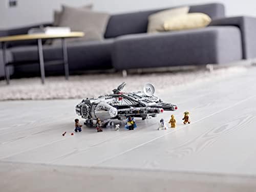 Inspire kids and adults with this 75257 LEGO Star Wars Millennium Falcon model. This brick-built version of this iconic Corellian freighter starship features an array of details, like rotating top and bottom turrets, 2 spring-loaded shooters, a lowering ramp and an opening cockpit with space for 2 minifigures. The top panels also open out to reveal a detailed interior in which kids will love to play out scenes from the Star Wars: The Rise of Skywalker movie featuring Star Wars characters Finn, Chewbacca, Lando Calrissian, Boolio, C-3PO, R2-D2 and D-O. This iconic set also makes a great collectible toy for any fan. This cool LEGO building toy for boys and girls aged 9+ measures over 5” (14cm) high, 17” (44cm) long and 12” (32cm) wide. Contains 1351 pieces.