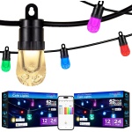 Enbrighten 2 Pack LED Premium Smart Color Changing String Lights, 24ft Black Cord, 12 Shatterproof Acrylic Bulbs, Weatherproof, Customizable, Wi-Fi App Control, Dimmable Outdoor String Lights, 82764