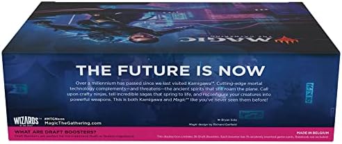 The Kamigawa: Neon Dynasty Draft Booster Box contains 36 Kamigawa: Neon Dynasty Draft Boosters (540 cards total). Each Draft Booster contains 15 Magic cards and 1 token, Helper card, or ad card, with a combination of 1 card of rarity Rare or higher, 3–4 Uncommons, 9–10 Common cards, and 1 Land card. A traditional foil card of any rarity replaces a Common in 33% of Kamigawa: Neon Dynasty Draft Boosters.