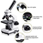 [Complete Accessories] It comes with phone adapter, wire shutter, 10 operating accessories, 15pcs microscope slides set, carrying bag. Meet all your biological observation need.