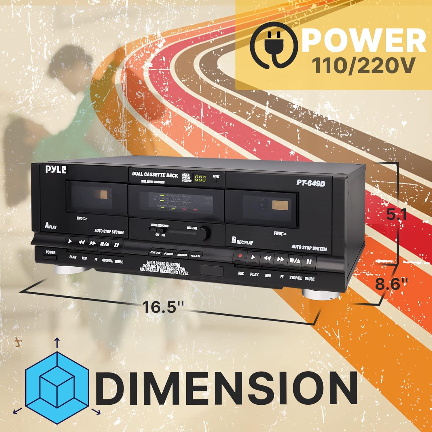 DUAL SPEED DUBBING: The dual cassette tape deck provides normal & high-speed audio cassette dubbing. , MORE CONTROL OVER PRODUCTION: The cassette deck includes an integrated 3-digit tape counter, CrO2 tape selector, and auto tape selector. It provides excellent recording level command for increased production levels. , SEAMLESS INTERFACE CONNECTIONS: The dual cassette deck provides a digital link interface for connecting to the PT600A amplifier. Amplifier not included. Included are RCA line inputs and outputs. , MULTI-FUNCTION DISPLAY: The audio cassette deck has a dual color multi-purpose fluorescent display for ease of use. , SUPPRESS OUTSIDE NOISE: Enjoy dynamic noise reduction and control over record and play level meters. ,