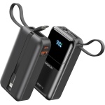 Portable Charger, 10000mAh Power Bank, 30W Fast Charging Battery Pack, USB-C, USB A, Bulit in 2 Cables iOS & Type C, Digital Display, Compact PowerBank Compatible with iPhone 16/15/14/13 – Black