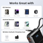 Compact Design, Convenient Anytime, Anywhere: This small, portable charger power bank(2″ x 4″ x 1″, 7.8 ounces) is lightweight and easily fits in your pocket, making it the perfect companion for travel or a power outage at home. With built-in USB-C and iOS cables, there’s no need to carry extra cords—just plug in and go. Ideal for both everyday use and travel,portable charger power bank when you’re on the go , PD 30W – Ultra-Fast Charging: upgraded PD 3.0 protocol, this 30W Max portable power bank delivers fast charging for iPhones and is also fully compatible with Samsung-AFC/PPS. Charging speeds are 3X faster than a standard 22.5W power bank, saving you up to 80% of your time. NTC temperature protection, the fast-charging battery pack automatically adjusts voltage and current to optimize power delivery, enhancing charging efficiency while preventing overheating , All-in-One Rapid Portable Charger Type C: This 10,000mAh power bank features 2 built-in cables (iOS & Type-C) and 2 charging ports (USB-A & USB-C), compatible with iPhone 16/15/15 Pro, Samsung-Galaxy-S23/S22/S21, Google Pixel, iPads, and more. Charge 4 devices at once time. Airline-approved, it’s the perfect travel companion , Smart Safety & Digital Display: This portable charger with built-in cables features an advanced power management IC and premium materials, offering comprehensive protection for your devices, including overcharge, overvoltage, overcurrent, short-circuit, and overtemperature protection. The smart digital display shows battery level with 1% accuracy, ensuring you always know your power status