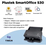 Plustek Wide-Format Color Duplex Document Scanner S30, for Large-Format Document Scan, Scans Wide Up to 12″ and Long Up to 200″, 100-Sheet Duplex Auto Document Feeder
