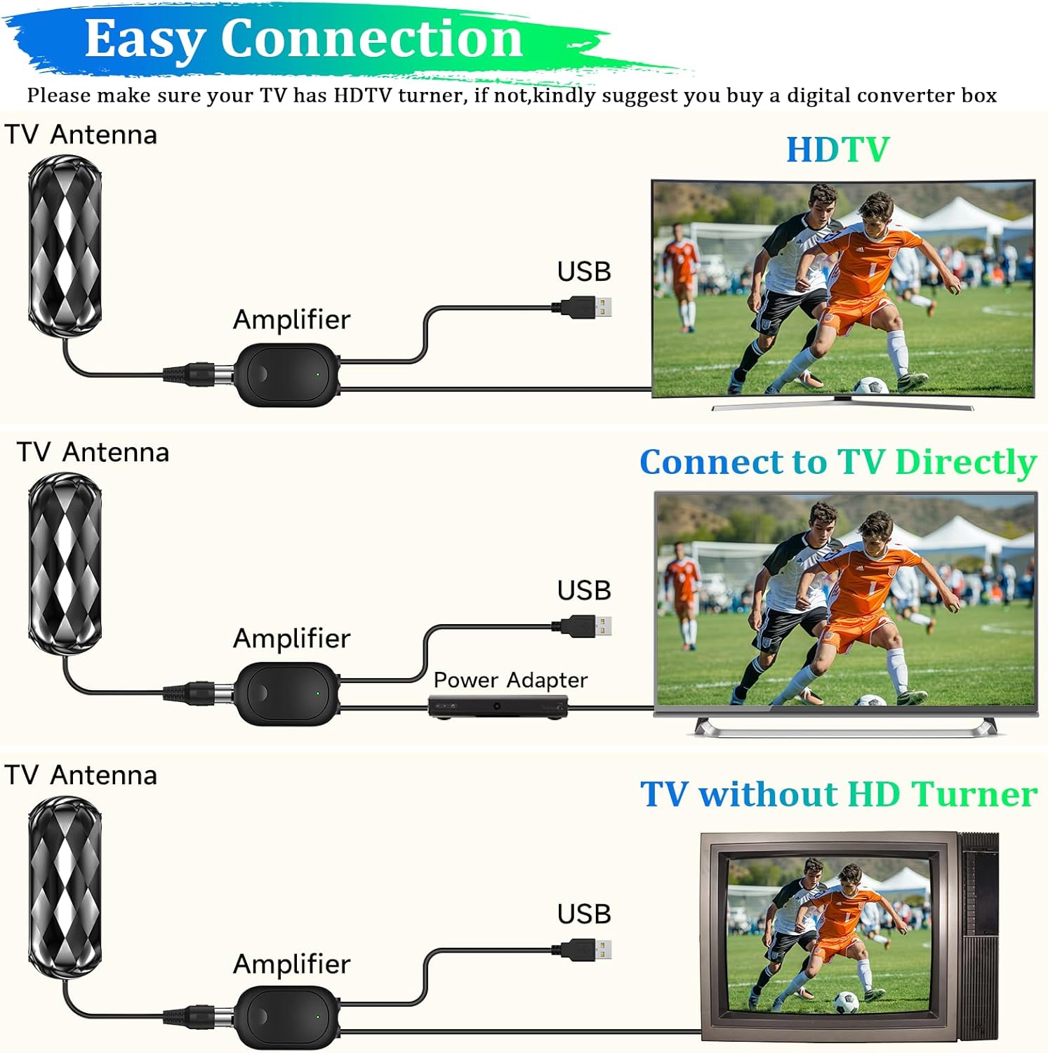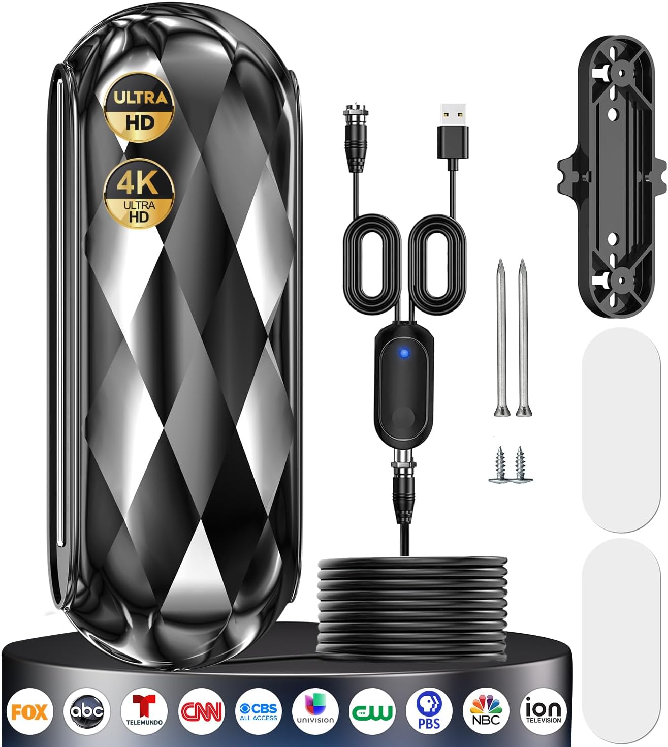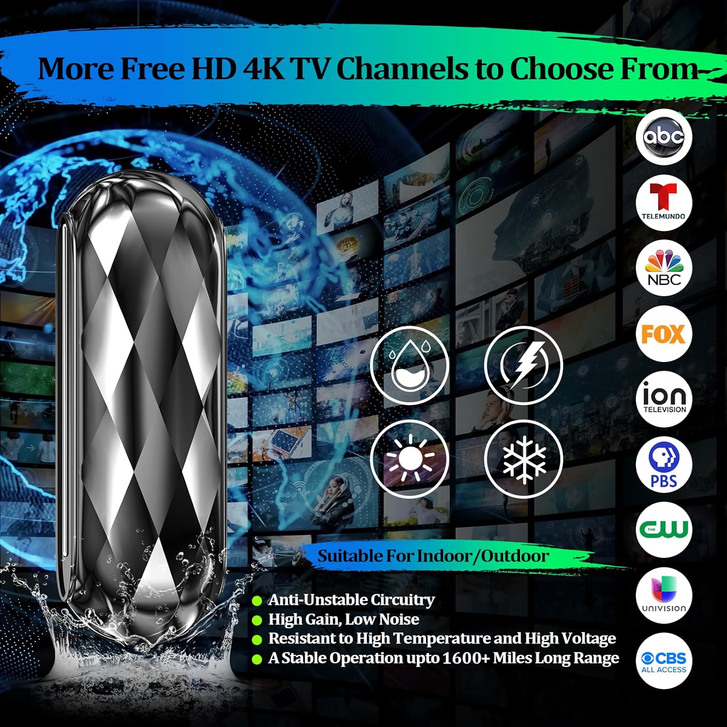 1600+miles Long Range Digital Antenna: 2025 Digital antenna with new type amplifier signal booster with built-in smart ic chip to picks up signals Up To 1600 miles which provide added range and maximum signal reception for more channels even you are far away form broadcast towers. You can receive signals whether you are traveling or placing it in your bedroom, living room, game room, or garden. , Zero-Cost 4K TV Antenna For Local Channels:Enjoy watching 4K 8k 1080p TV at no cost! Say goodbye to hefty TV bills with our Full HD antenna for smart TV, featuring the latest intelligent IC chip for maximum signal amplification and interference prevention. Access major networks like CBS, ABC, FOX, NBC, CW, PBS, ION, UNIVISION, and more local channels. Supports 4K, 1080p, and other digital formats. , 360 Degree Reception Indoor Outdoor TV Antenna: Omnidirectional digital antenna receives 360 degree free channels from ANY DIRECTION! HD indoor antenna are built-in upgrade Amplifier Signal Booster, which can be placed almost anywhere in your home, such as bedroom, living room and game room, also works as a portable antenna place in RV or tent on your next trip. Let Digital antenna bring you and your family, friends, and colleagues more happier time! , Ultral HDTV Antenna-On the GO: Unique black classic fashionable tones can be well matched with your decor and surroundings. Its design is more delicate and lightweight will look very compatible with TV and other accessories in your home, which is allow you hide it at your desired position. Portable antennas can use indoor and outdoor! Best outdoor hdtv antenna also works as RV antenna or AIR tv antenna on your next trip. It will be an indispensable part of modern homes. , Portable Design and Easy to Mount: Comes with 36ft coaxial cable,make sure you can finish the install within a few minutes, connection steps: (1) Connect to the “CABLE/ANT IN” on the back of any digital TV. (2) Place the antenna in the optimal position, usually near a window or on a wall. (3) Use the TV’s “Channel Search” function to scan for channels and get plenty of channels to enjoy free TV shows in your living room, bedroom, basement and RV etc. , US Professional After-sales Team: We focus on researching antenna and responsible for every item, our professional service team to give kindly guaranteed support our customers. With any problem, please contact our team directly, we have a professional team ready to help you. ,