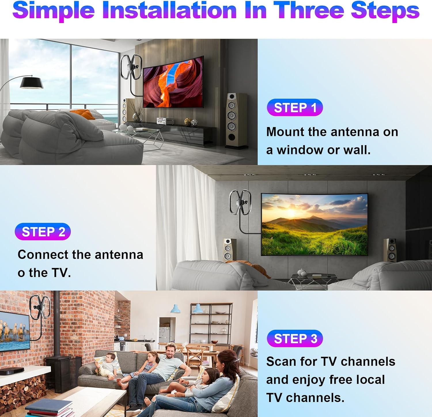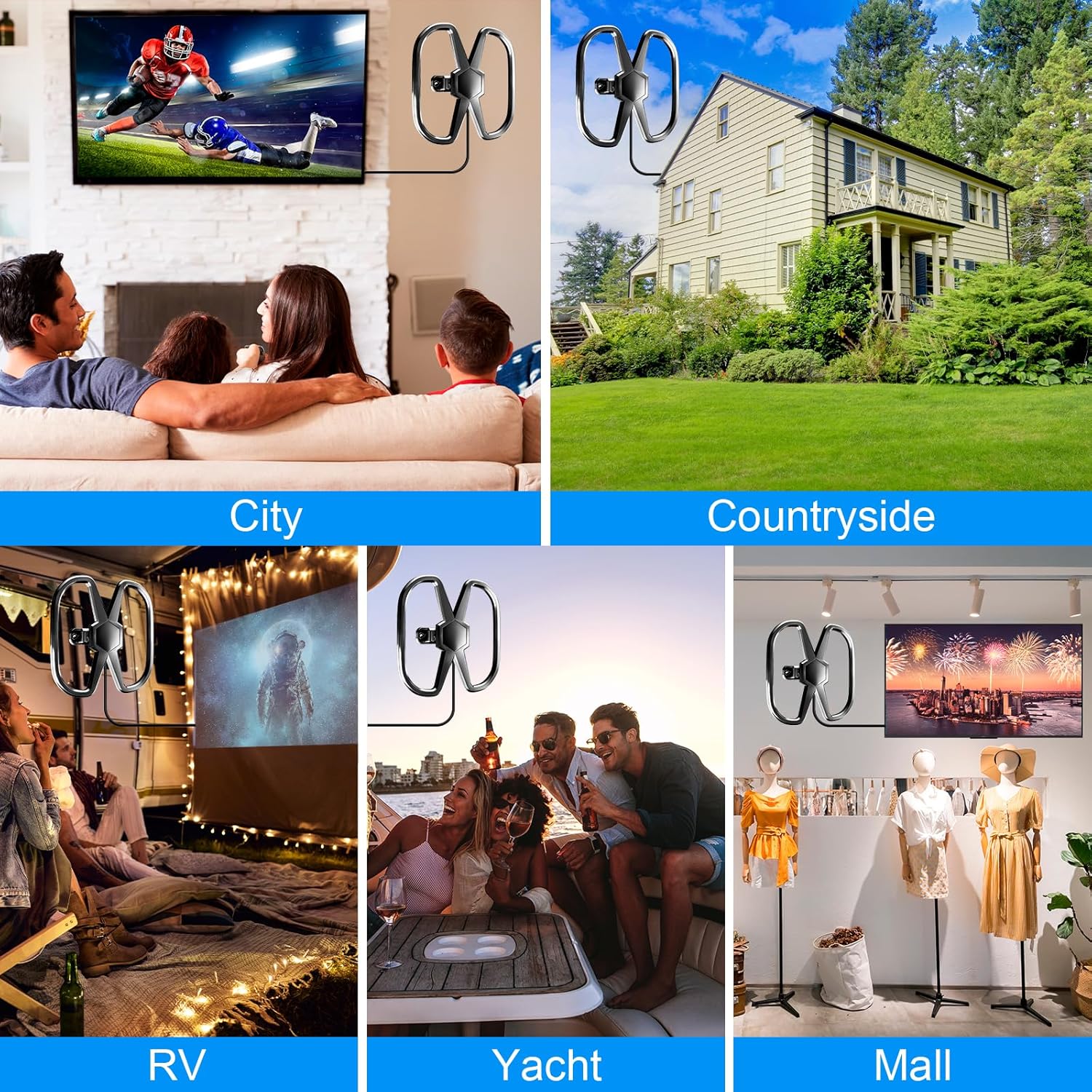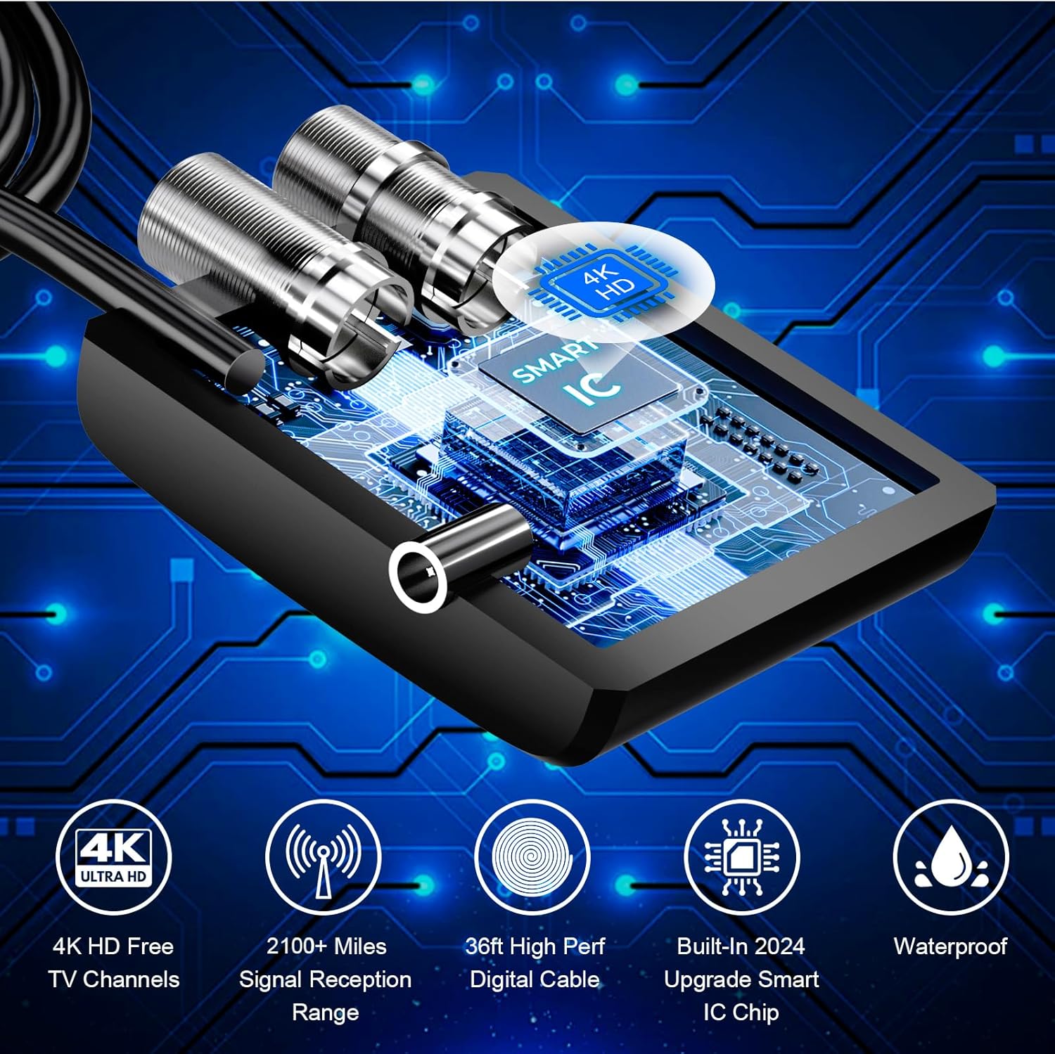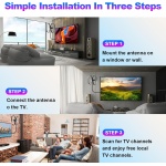 Outdoor TV Antenna-Support 2 TVs: We use the latest design to integrate a signal amplifier with a 2-way coaxial cable splitter, one antenna creates the value of two. HD antenna Ssupport 720p, 1080i, 1080p, 4K. Working Frequency: VHF 170-230MHz, UHF 470-860MHz. Receive free digital broadcast high definition TV signals. The amplifier will enhance and strengthen the signal received by the indoor outdoor TV antenna. Support 2 TVs at the same time without a splitter. , 2100 Miles Long Range TV Antenna: 2025 New Release long range digital tv antenna can receive up to 2100 miles signals, equip with 2025 POWERFUL HIGH-QUALITY IC chip and signal amplifier, optimize the signal transmission protection against interference with other signals, ensure the stability of signal reception and make sure you get more free channels even you are far away broadcast tower. Put the indoor antenna on a window or wall, or better position, you may receive 638 channels for supprise. , Lots of Free Full HD Channels: Never Pay Monthly Bill – With UPGRADED 2025 indoor tv antenna no more need to pay a HUGE bill on TV. Our hd tv antenna can receive FULL HD Channels like ABC, CBS, NBC, PBC, Fox and SO MUCH MORE. With amplified tv antenna start to access all of the news, sitcoms, kids and sports programs! ADVANCED TOOL FOR LIFE TO RECEIVE THE CHANNEL WITHOUT MONTHLY BILL! Reminder: Re-scan channels after moving the antenna. , Indoor Antenna for Amart TV Fit Anywhere-Easy Installation: Highest rated indoor tv antenna be placed almost anywhere in your home.Simply place the antenna on your TV stand or a nearby shelf and connect it to your TV’s cable input with the included coax cable. 360 Degree Adjustable ear shaped design, easy to adjust the antenna to get the best reception and run a channel scan for over-the-air channels on your TV. , 36 FT High Quality Coax Cable: HDTV antenna for smart tv, comes with high performance coaxial cable, it’s made of STRONGER COPPER WIRE to GAIN the SUPERIOR SIGNAL CONDUCTIVITY AND INCREASES CABLE DURABILITY. Coaxial cable is composed of solid center conductor, dielectric insulation, three aluminum shielding layers and durable outer layer,anti-high temperature and high voltage eliminates signal interference with loss of signal decreased by 90%, bringing superior HD reception and powerful signal. ,