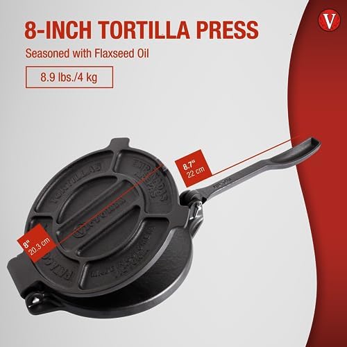 SMALL OR LARGE TORTILLA PRESS: The Victoria tortilla press is made with natural materials and is easy to maintain. It’s available in multiple sizes, and each press is restaurant quality to ensure perfect tortillas every time. Give your cooking an upgrade by using cast-iron cookware.