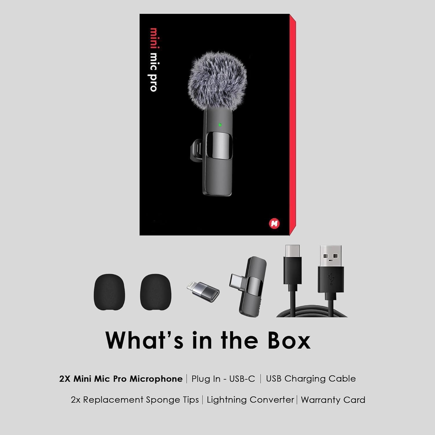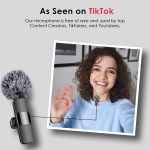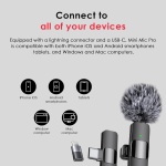 Crystal Clear Audio: Mini Mic Pro utilizes state-of-the-art Series V 2.4GHz digital transmission and proprietary near-zero latency codec with 128-bit encryption, it delivers crystal-clear, incredibly stable audio with a range of up to 260m. Equipped with 2 plush windproof covers and 2pcs replacement Sponge heads, the Wireless audio you can rely on in almost any recording application. With built-in professional-grade intelligent noise reduction chips. , Omnidirectional Sound Reception: Our wireless microphones are equipped with high density spray-proof sponge and high-sensitivity Microphone, our device clearly records every detail of the sound regardless of the surrounding environment. Our noise reduction technology cuts off any noise interference while recording so as to ensure the sound quality. , Connect to all of your devices: The upgraded wireless clip-on microphone is equipped with a Lighting connector and a USB-C. Compatible with both iPhone iOS and Android smartphones and tablets, and Windows and Mac computers, better than Bluetooth. , Rechargeable Transmitter and Receiver: The wireless lavalier microphone is built in 65MAH rechargeable batteries up to 6 hours operation time with only two-hour charging time. While using the lav mic, you can charge your device simultaneously , As Seen on TikTok: Our microphone is free of wire and used by top Content Creators, TikTokers, and Youtubers. You can hold it by hand or clip it on your shirt. Helps you get rid of messy wire and clearly record or take videos at a further distance indoors or outdoors. ,